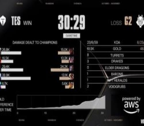 电竞体育10月30报道 S15八强TES首局击败G2,JKL韦鲁斯首局打出了38.9W的伤害。
