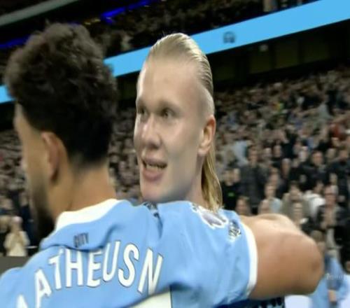 此役主场对阵利物浦,哈兰德在比赛第29分钟打入一球,帮助曼城取得1-0领先。