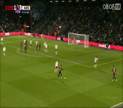 不过,第54分钟,阿森纳还是在对方多人密集防守的情况下,完成了打破1-1的进球。整体来看,伯恩茅斯的全部11人都在自己的半场回防,而最终在赖斯完成射门时,伯恩茅斯在禁区有多达8名队员,由此可见他们防守是有多么的密集。可哪怕是这样,阿森纳还是通过一次高空传递之后的禁区造险,由后插上的赖斯完成了推射。