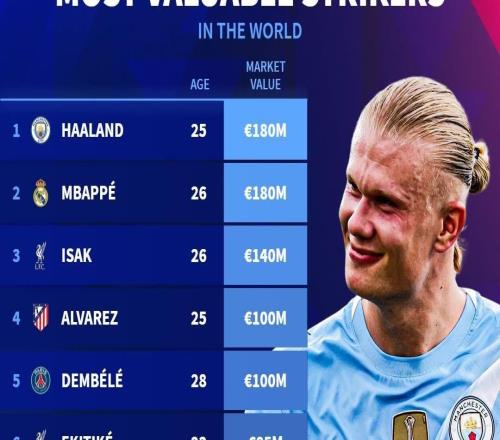 德转列中锋身价榜:哈兰德1.8亿欧居首,姆巴佩第二